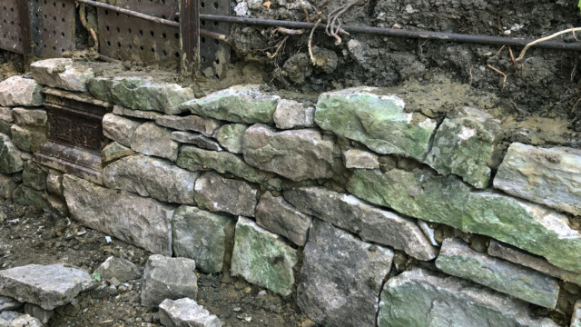 A residential home in Wiltshire. This client was keen to create a living wall, with a nod to the Cornish style of walling. Luke rebuilt the wall incorporating some unusual and unique features; a cast iron fire grate, locally found fossils and a variety of ferns and plant life.