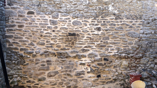 A local Artist’s studio in Mere. The ground had been dug away many years ago revealing the original foundations. Luke rebuilt and repaired the external wall with a lime mortar, returning it to a sound state.